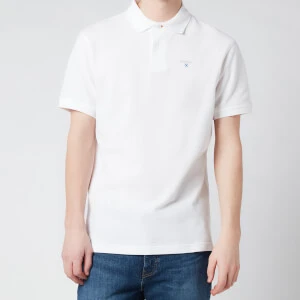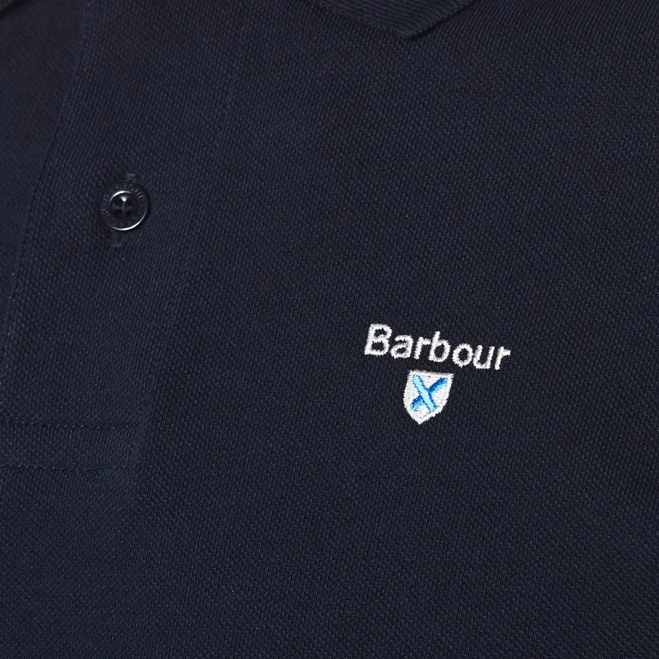 Men’s navy ‘Sports’ polo shirt from the British heritage brand, Barbour. Crafted from woven cotton piqué, the polo shirt features a two button placket and signature embroidered branding on the chest. Complete with contrast stitched detail to the top eyelet and a classic ribbed polo collar and cuffs.