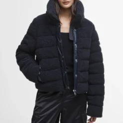 Barbour introduces the Franchesca fleece jacket, a must-have for colder weather. Featuring a high-neck for added warmth, it’s crafted from ultra-soft quilted sherpa for cloud-like comfort. Buttoned pockets offer secure practicality, while the designer logo patch adds a signature touch.