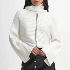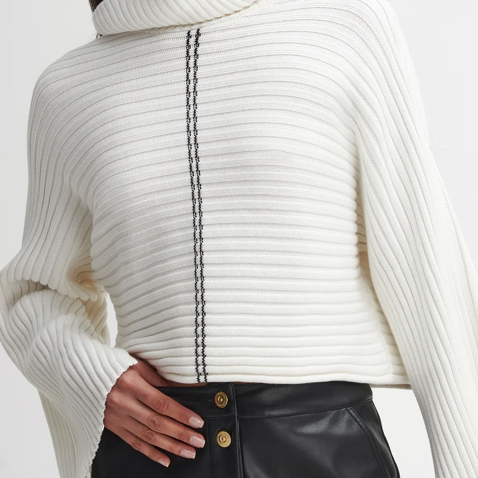 - Roll neck, flared sleeves, ribbed design