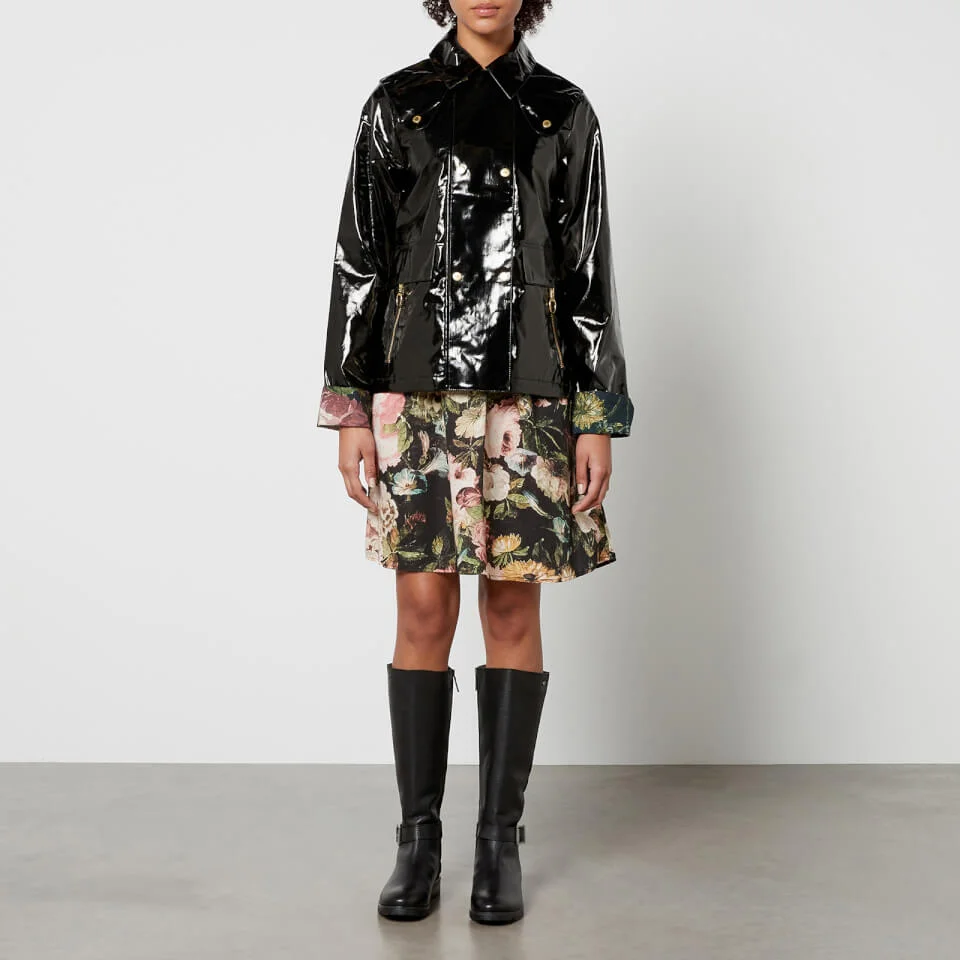 - Black faux patent-leather, multicoloured floral-print cotton