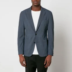 BOSS Black’s P-Hanry blazer is made from stretch-crepe and has a mélange yarn to create a unique two-tone effect and texture. It has a sharp slim fit and kissing horn buttons along the cuffs.