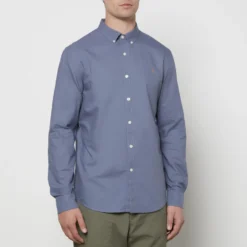 - Button-down collar, buttoned barrel cuffs, embroidered logo