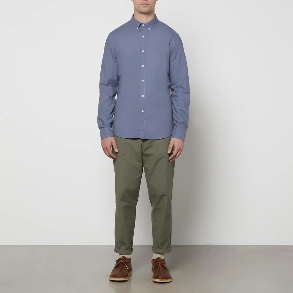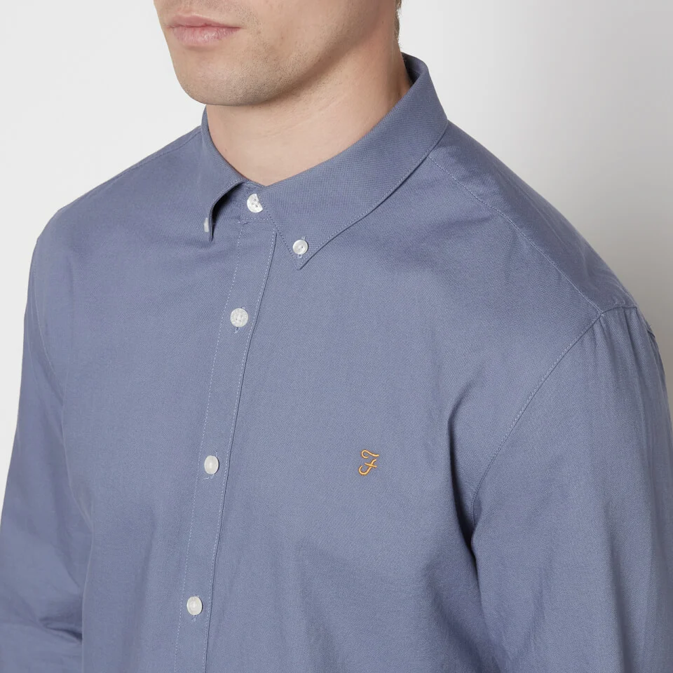 Made from organic cotton Oxford, Farah’s blue Brewer shirt is a wardrobe staple. Cut to a classic silhouette for a slim fit, this style can be dressed up or down depending on the occasion. The house logo is embroidered at the chest for discreet signature polish.