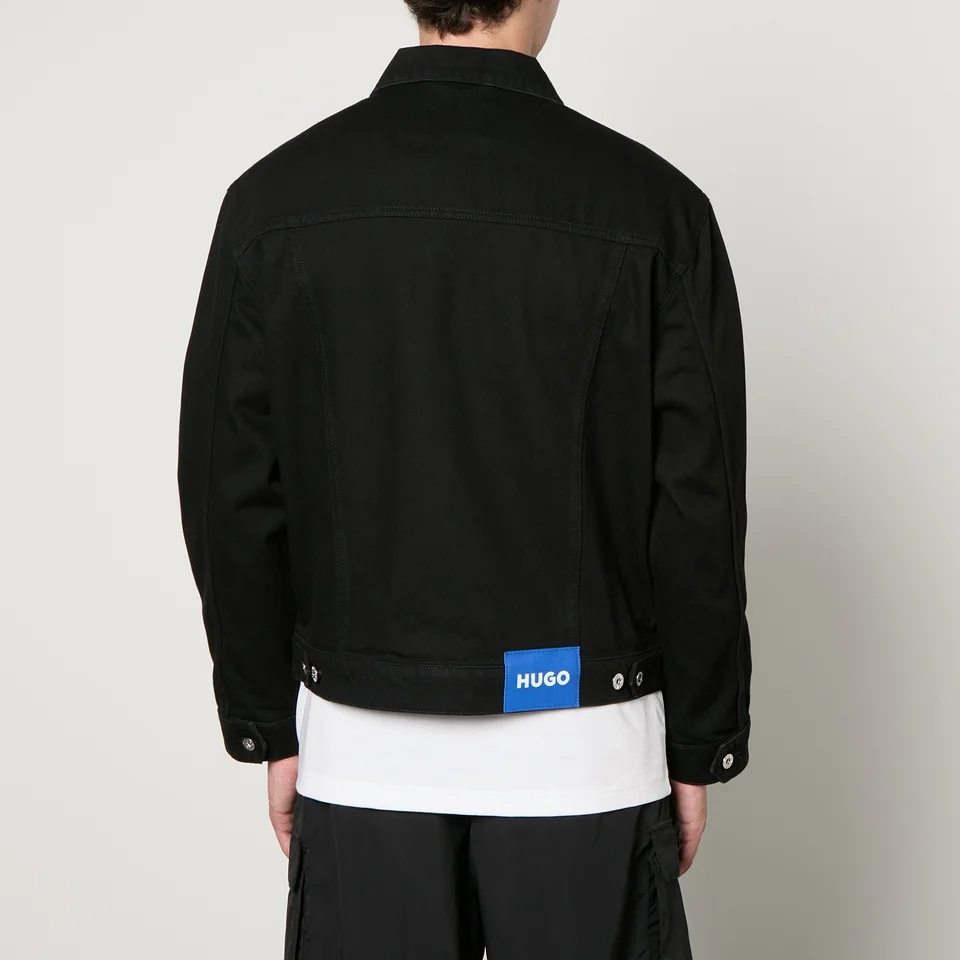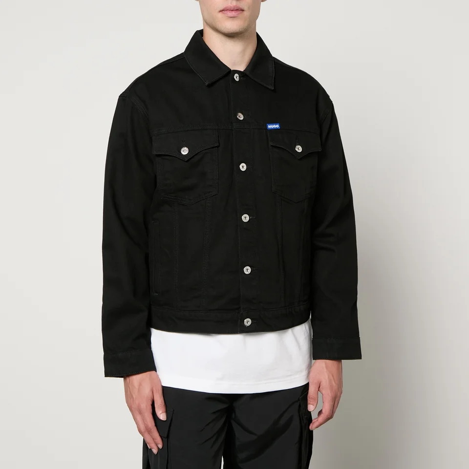 This black Dex denim jacket offers a contemporary cropped cut, four practical pockets, and bold blue appliqués. Cut to a classic fit, this silhouette can be layered over everything from T-shirts to hoodies. Check out HUGO Blue’s range for accompanying pieces to complete the urban casual look.