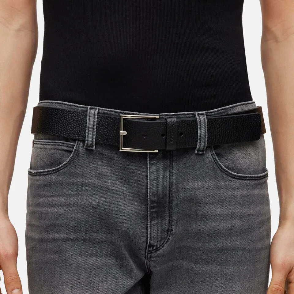 - Silver-tone hardware, contrast stitching, embossed designer logo