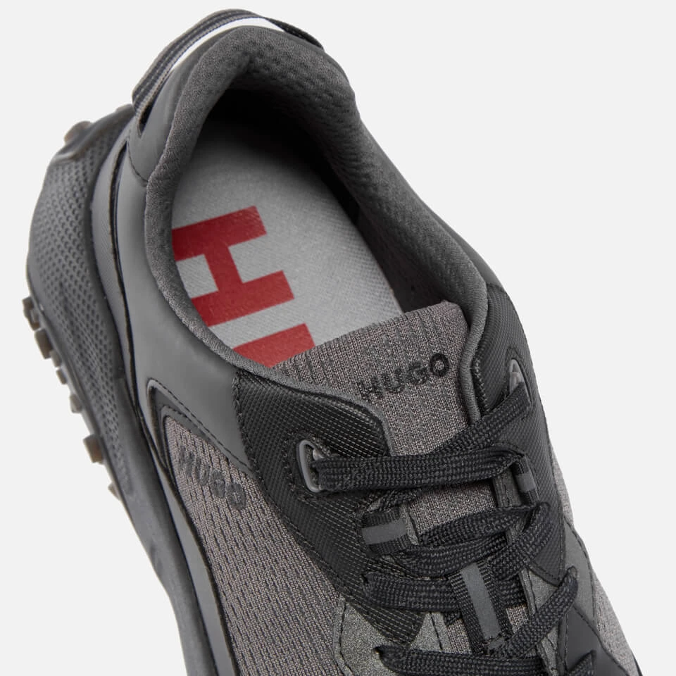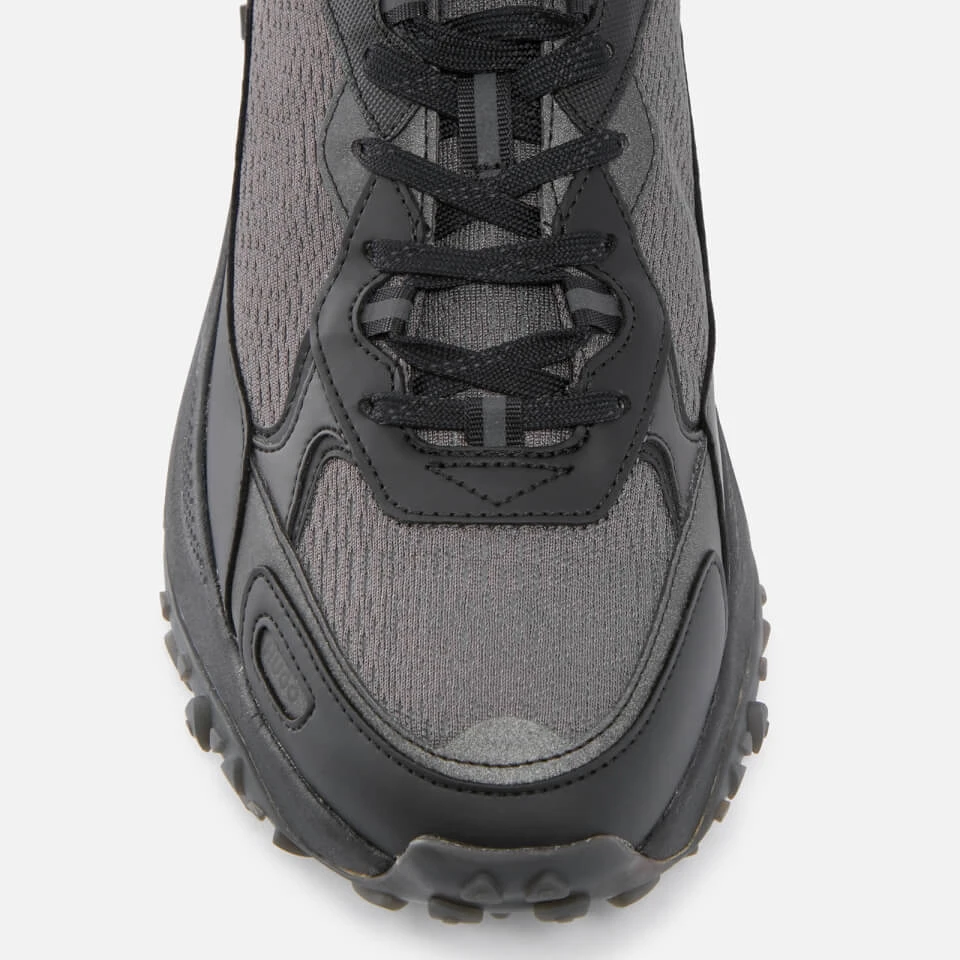 - Pull tabs, designer logos, grey embroidery, vents, rubber soles