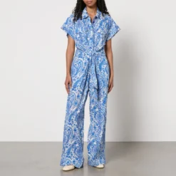 Awaken your wardrobe with one of Lollys Laundry’s boldly printed pieces. With its paisley print in blue and white, this Mathilde jumpsuit follows a relaxed short-sleeve silhouette, complete with a waist-cinching belt and a straight-leg cut.