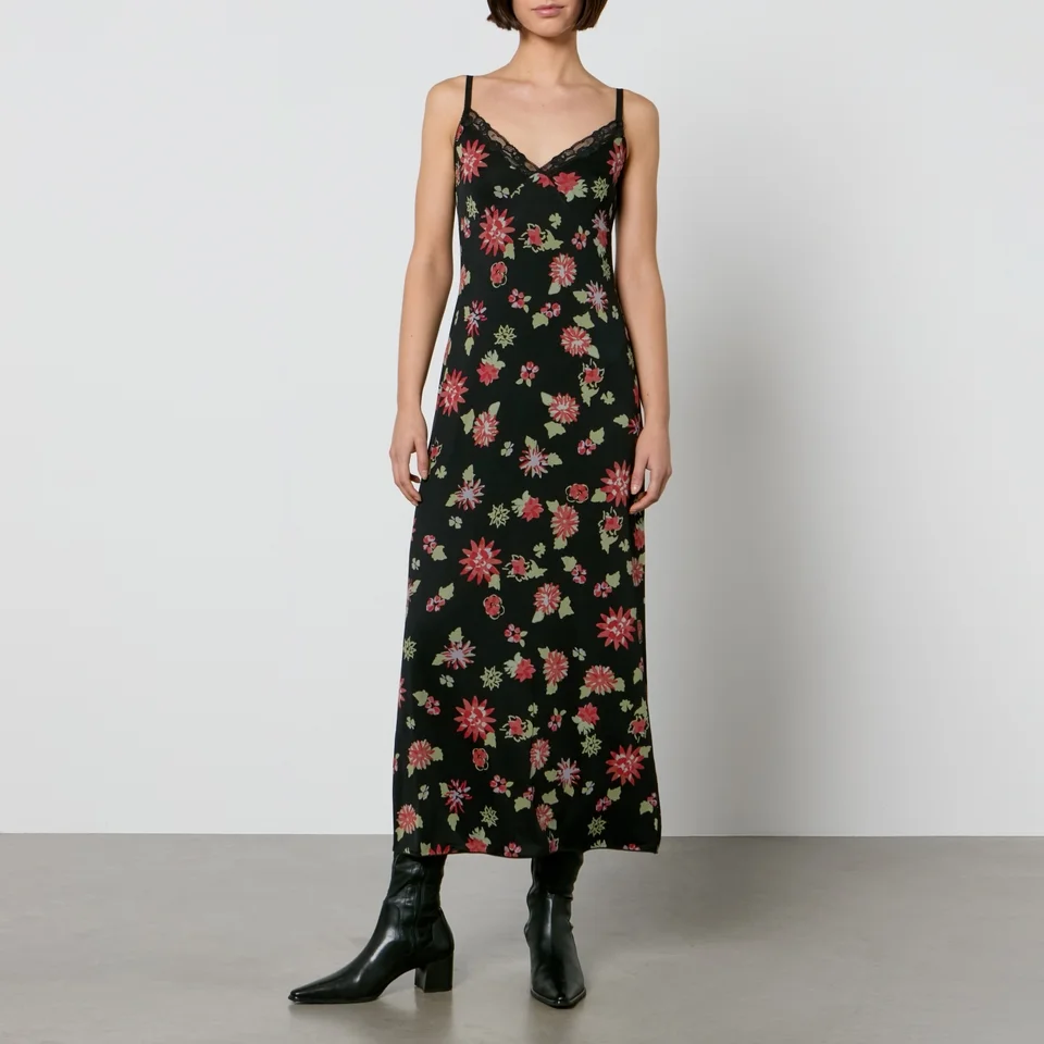 Lean into ’90s aesthetics with this Menta dress. It’s cut from slinky jersey fabric with romantic florals and a lace-trimmed V-neckline. Spaghetti straps emphasise the slip style, entreating you to wear it solo or with a blazer in the chill.
