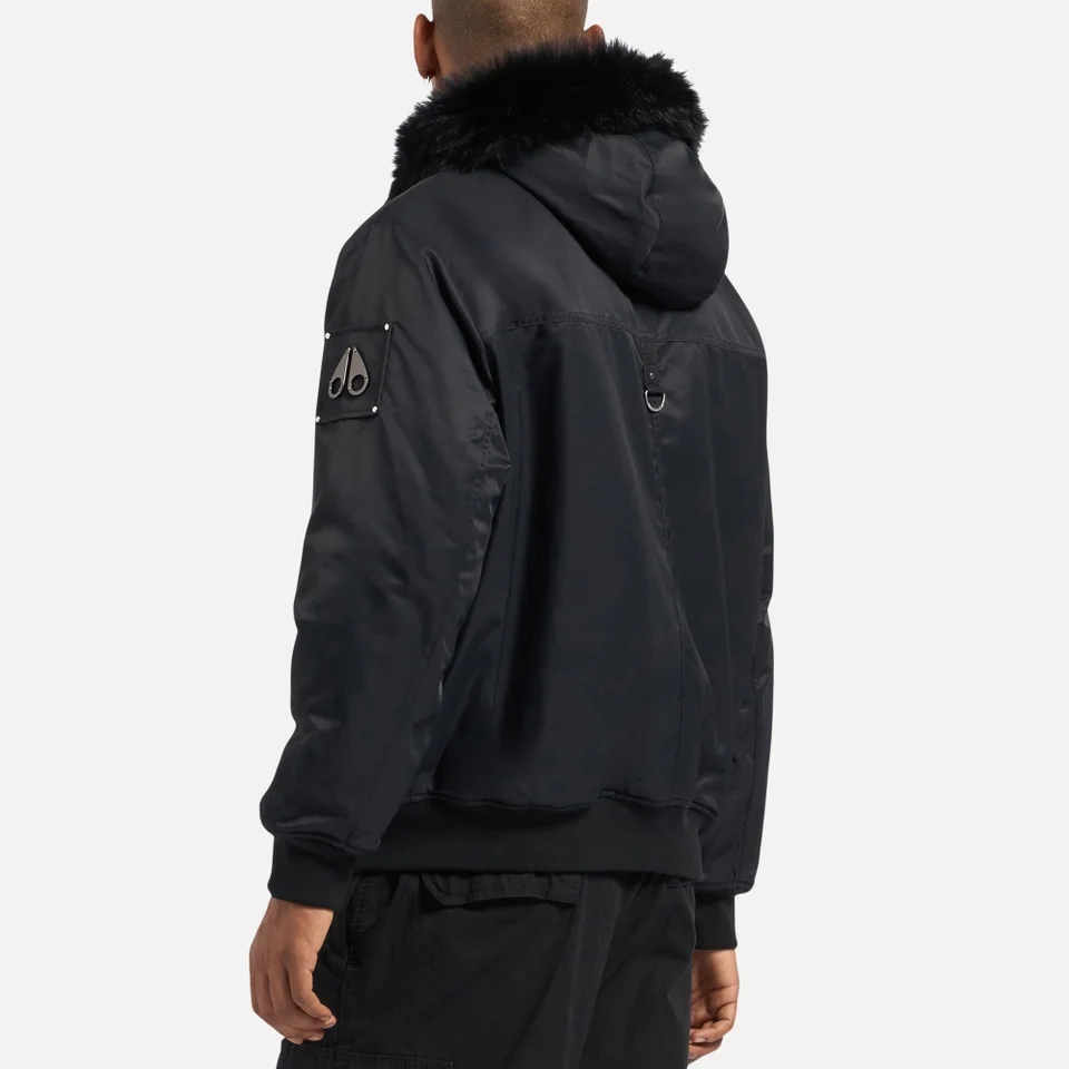 The perfect mid-way point between a jacket and a coat, Moose Knuckles’ Denali bomber comes in nylon for a hardwearing, waterproof layer. Finished with sleeve hardware and sleek snap buttons, the piece is topped with a shearling-trimmed hood and a down and feather filling for winter walks, skiing, and colder climes.