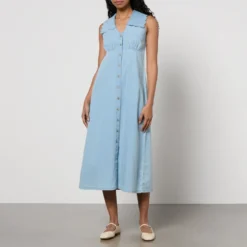 Nobody’s Child evokes dopamine styling with its Ferne Cotton Happy Place collaboration. Made from blue cotton-denim, its Wylde dress features a scalloped collar and sleeveless silhouette ideal for warmer months. Its button fastening through the front allows for versatile styling. Pair yours with platform sandals.
