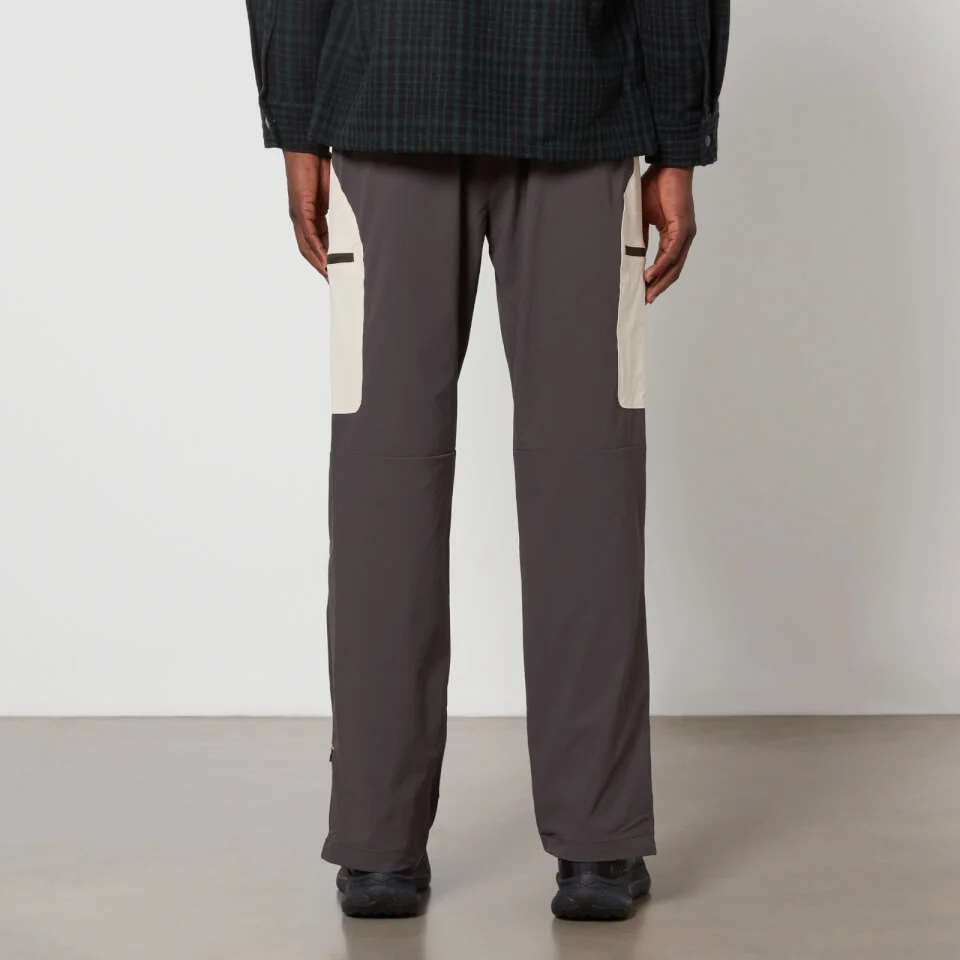 The Vinson trousers embody a contemporary technical aesthetic, featuring white geometric overlays that seamlessly incorporate pockets within a neutral grey colourway. Crafted with a breathable nylon finish and strategically placed mesh inserts, they offer versatility as functional outerwear, yet effortlessly pair with a hoodie for casual comfort.