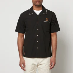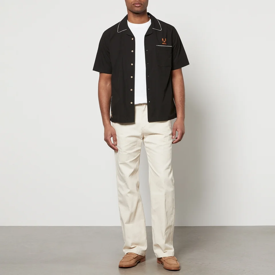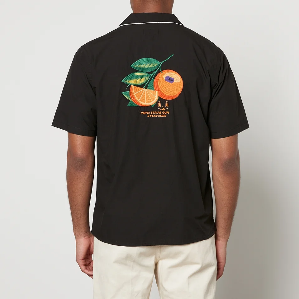 Percival offers a clean look with its PeriCo bowling shirt. Crafted from crisp black cotton-poplin, it’s adorned with orange embroidery motifs to the front and back. It features a functional chest patch pocket to hold your sunglasses. It has a relaxed silhouette that we think looks best layered over a crisp white tee.