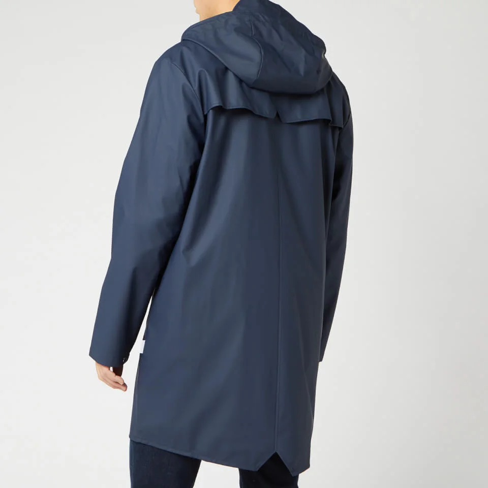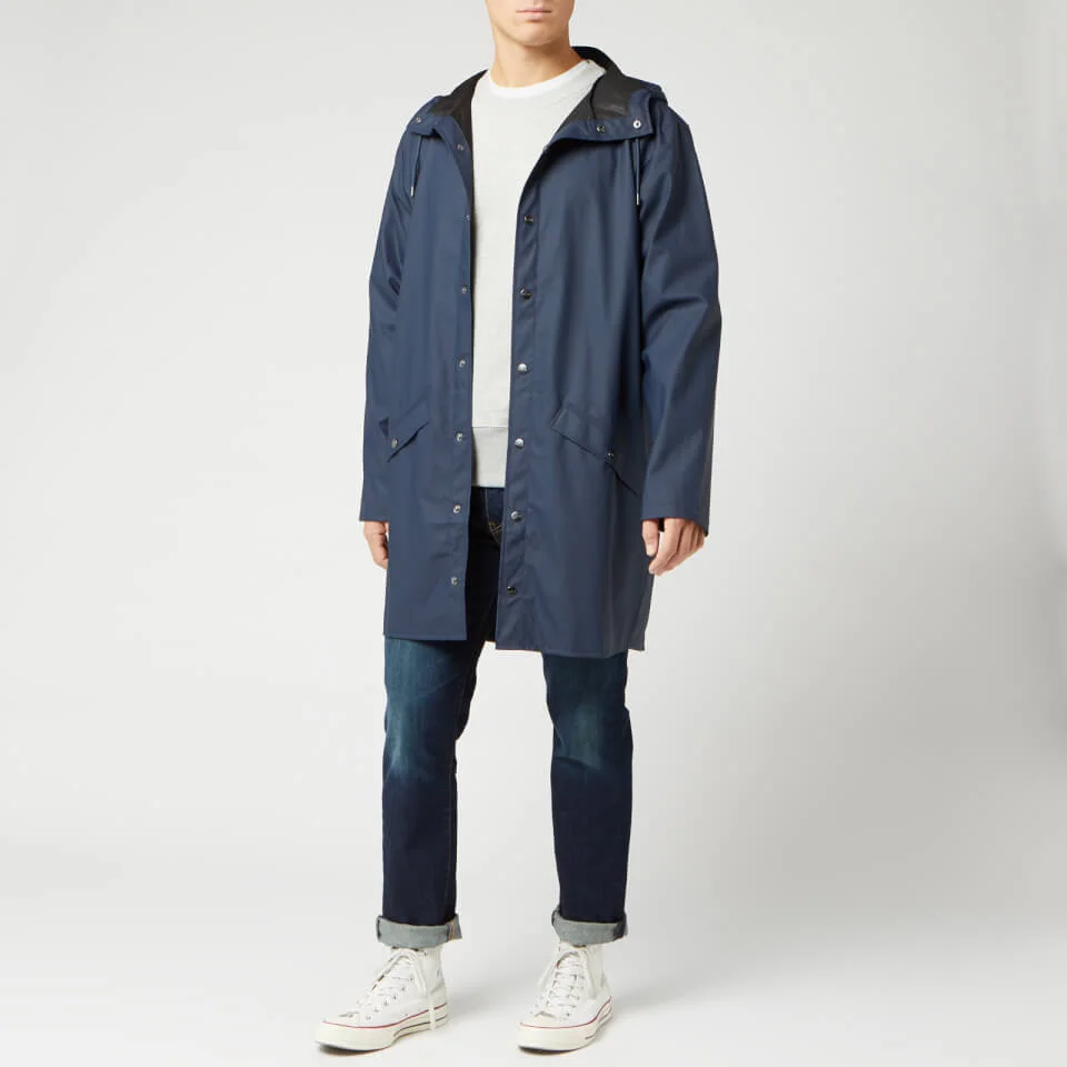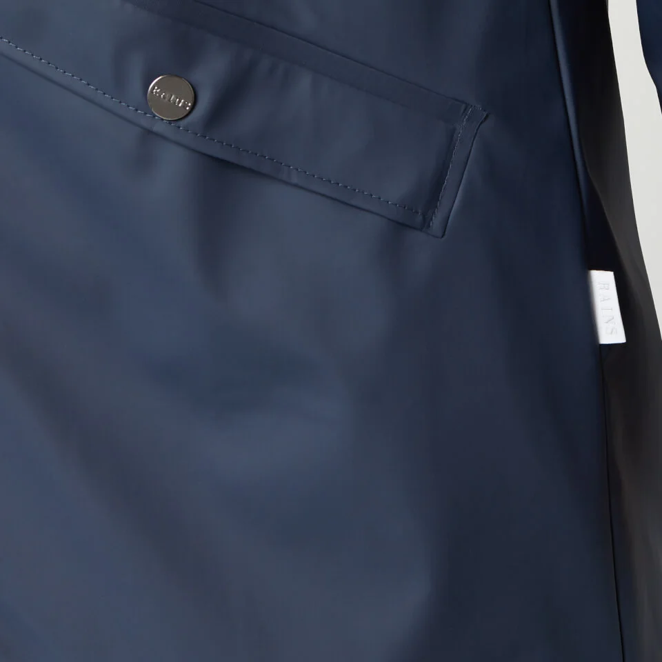 The long-length RAINS jacket offers a relaxed, wear-anywhere fit in lightweight matte fabric. Features include a seamless French placket with press studs, an adjustable hood with cap front, storm flap, adjustable cuffs, slanted pockets. A fishtail hem doubles down on the waterproofing.