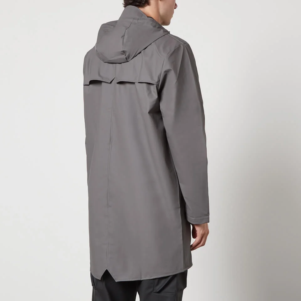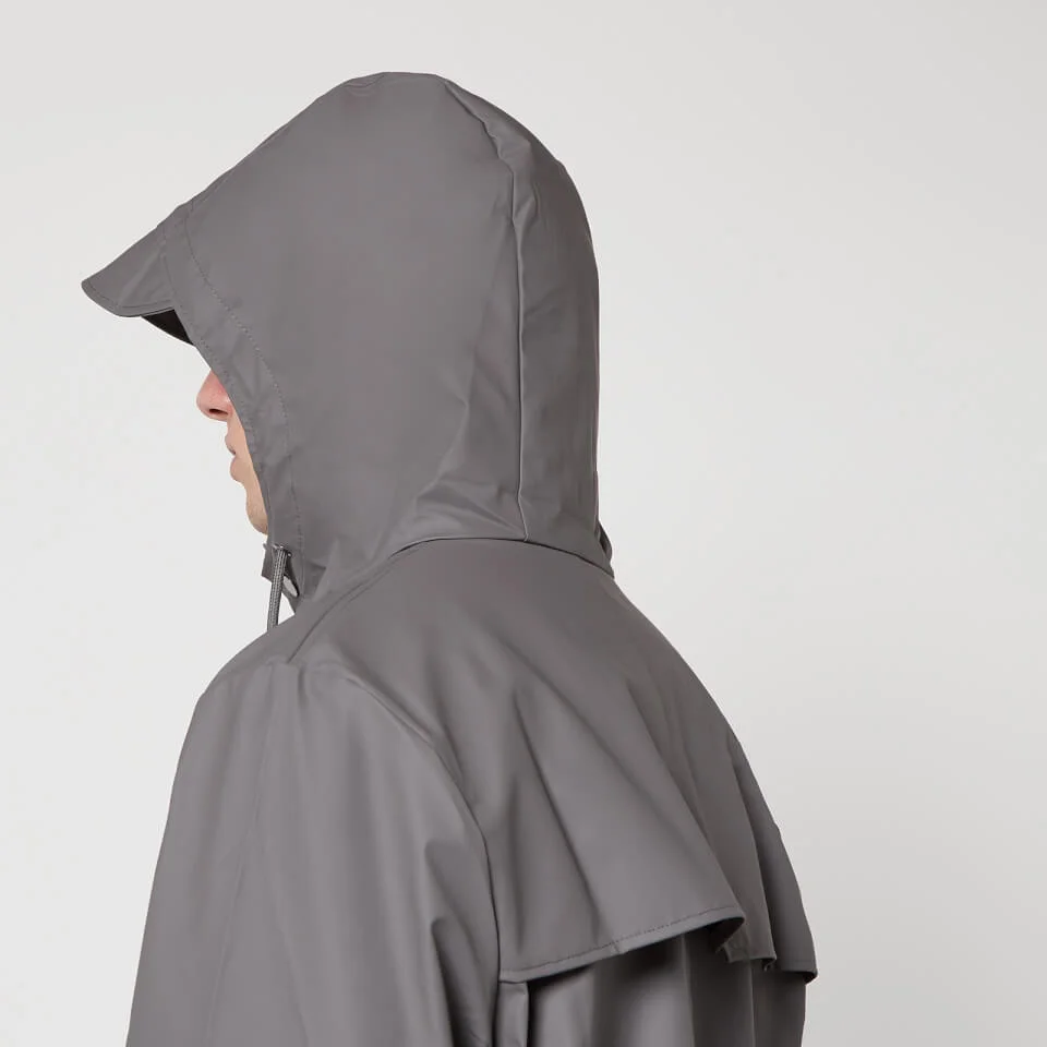 Mix functionality and contemporary flair with Rains’ latest collection. Part of the AW23 selection is this long jacket. It has everything you need when stuck in a downpour – deep pockets, a peaked drawstring hood and a cosy shell silhouette. Wear your zipped-up when showers start.