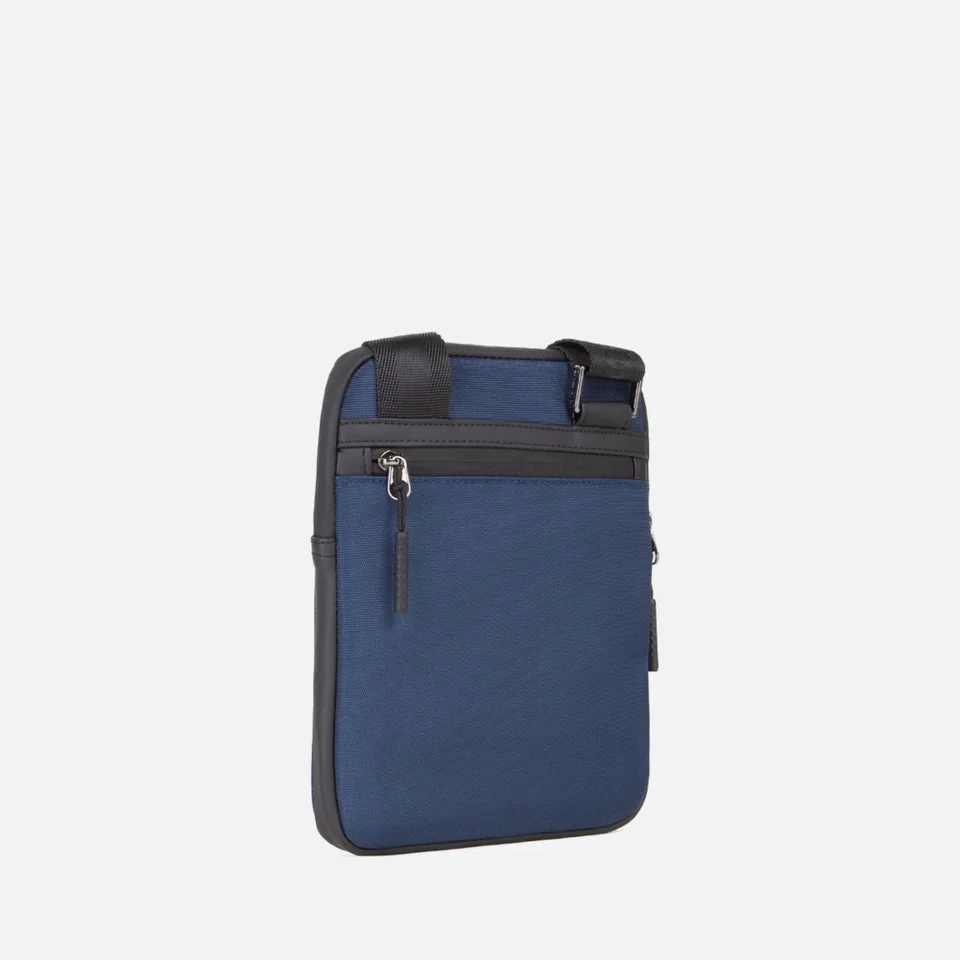 - Adjustable webbing shoulder strap, designer logo, two zipped pockets