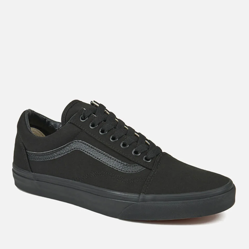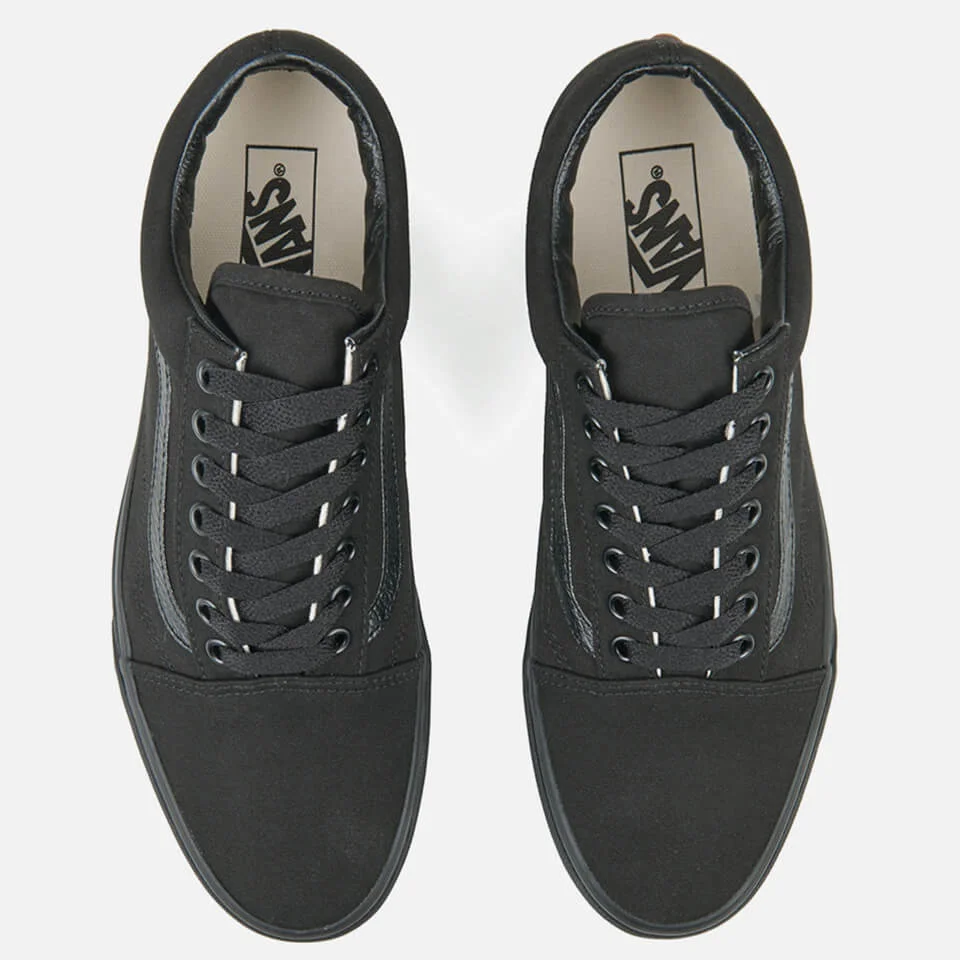 An iconic Vans style and the first to bare the iconic sidestripe, the Vans Old Skool are a monochrome style in durable black canvas. The low top design has re-enforced toe caps to withstand repeated wear and padded collars for increased support. Iconic rubber waffle outsoles and an ‘Off The Wall’ licence plate signs off the design.